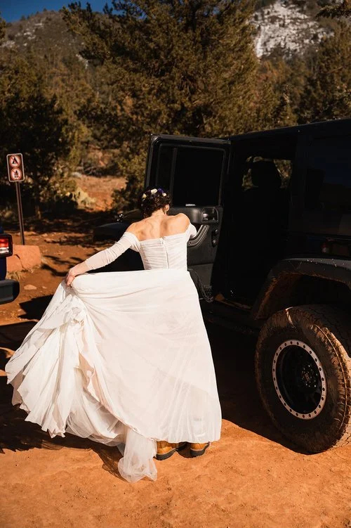 The drive itself is always gorgeous and absolutely a part of the experience, and then you reach a spot where you really can just hang out with some privacy, do some chill exploring of the area, and get married. This could be by Jeep or side-by-side up a mountain pass, or in your Subaru along some more chill OHV roads to a lake shore.